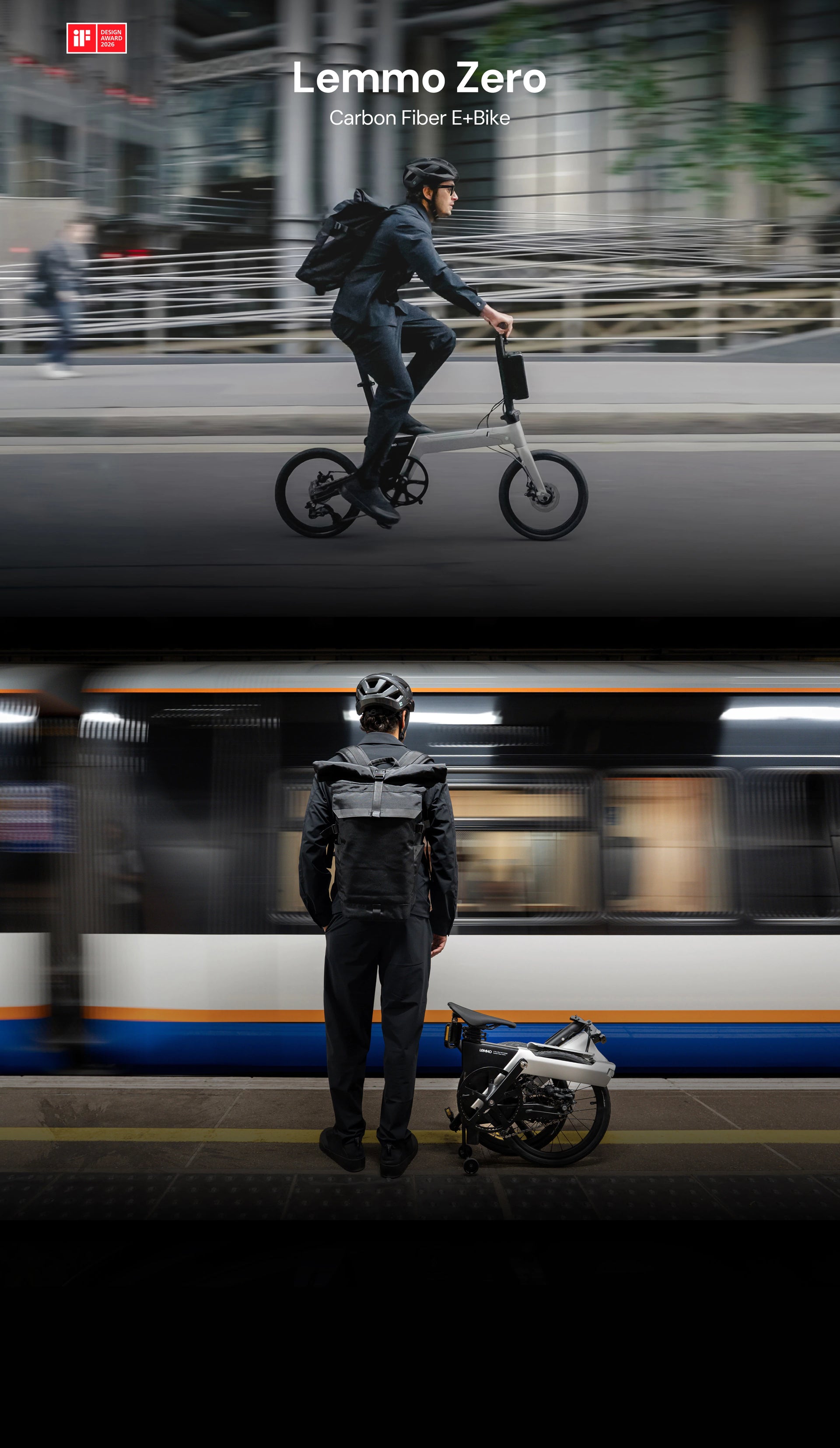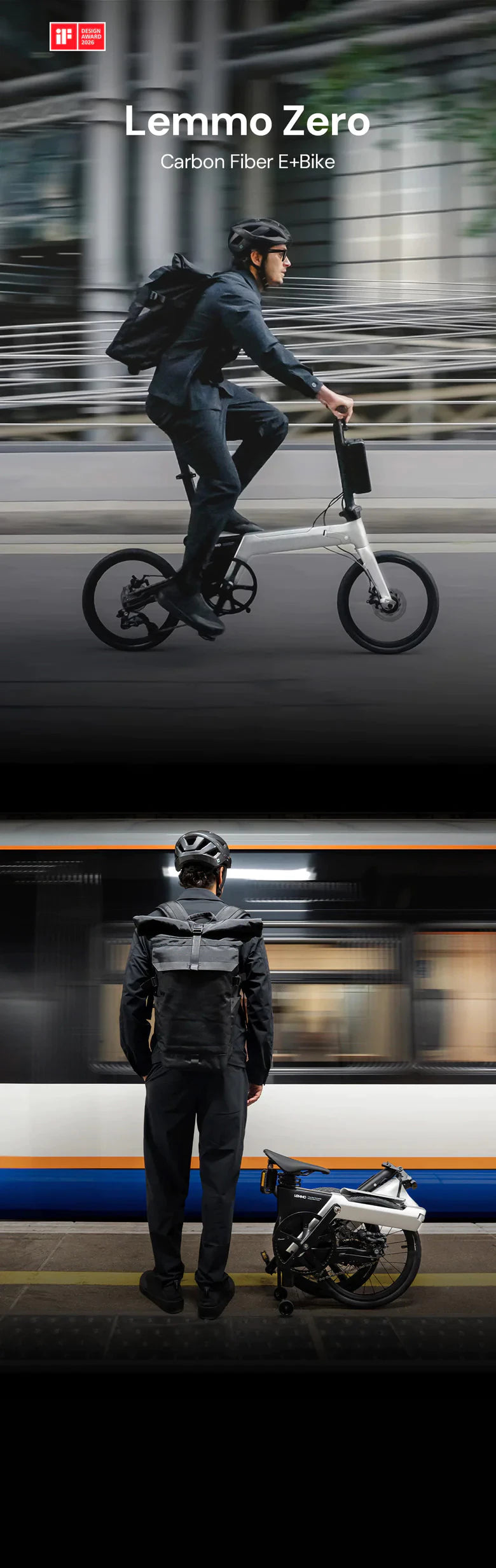 Nach dem Zusammenfalten brauchst du nur die Sattelstütze ausfahren – schon kannst du das Lemmo Zero dank kleiner Führungsräder oder der großen Hinterräder bequem durch Straßen, Bahnhöfe und enge Passagen rollen.